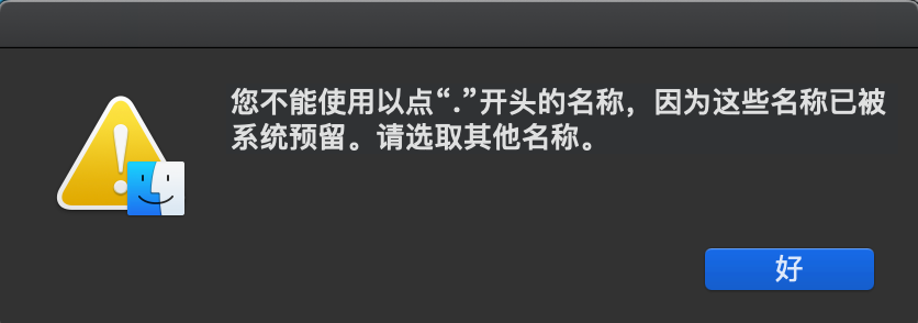 提示:“您不能使用以点“.”开头的名称,因为这些名称已被系统预留。请选取其他名称。”